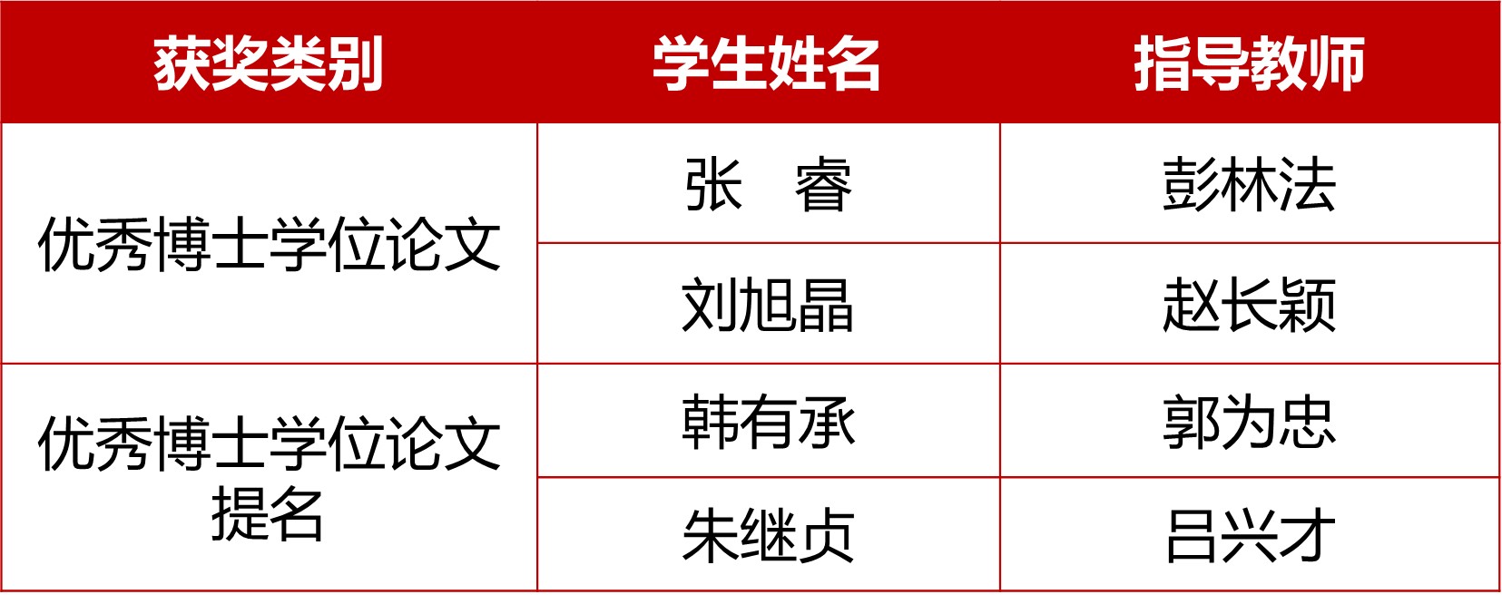 近日,350vip8888新葡的京集团2023年优秀博士学位论文及提名论文名单正式揭晓,新葡的京官网2篇论文入选优秀博士学位论文,2篇论文入选优秀博士学位论文提名。本次全校共有15篇优博论文和26篇优博提名论文。学院获奖名单如下: