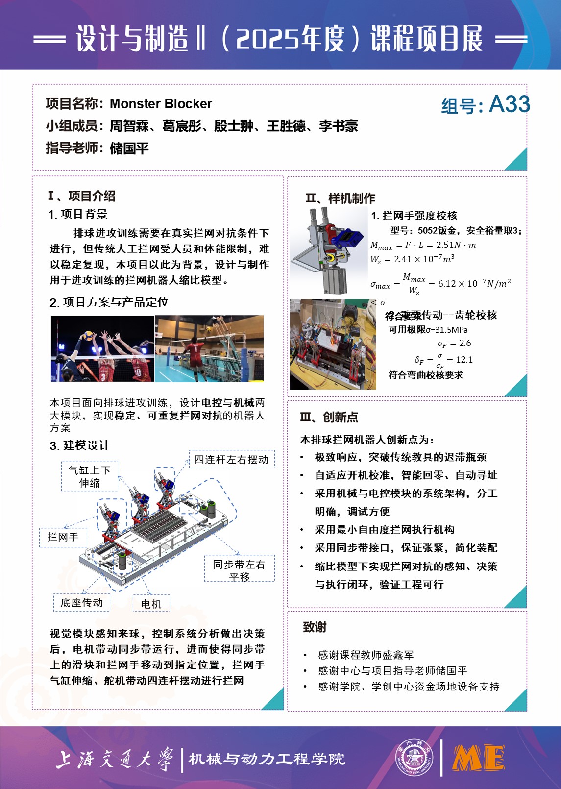 排球进攻训练需要在真实拦网对抗条件下进行,但传统人工拦网受人员和体能限制,难以稳定复现,本项目以此为背景,设计与制作用于进攻训练的拦网机器人缩比模型。
