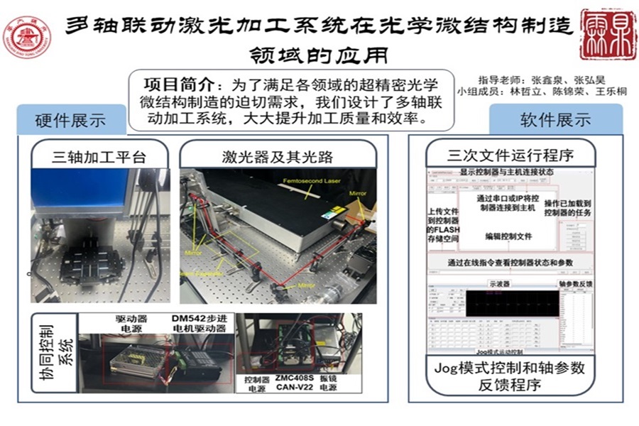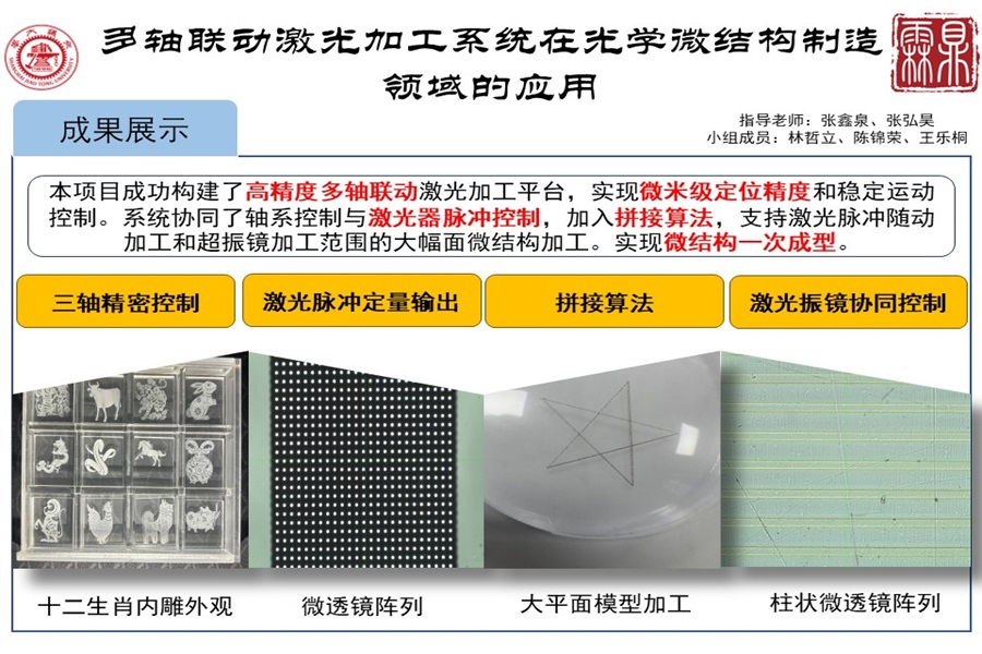 本项目成功构建了高精度多轴联动激光加工平台系统,实现了微米级加工精度,稳定运动控制及激光控制等性能需求。