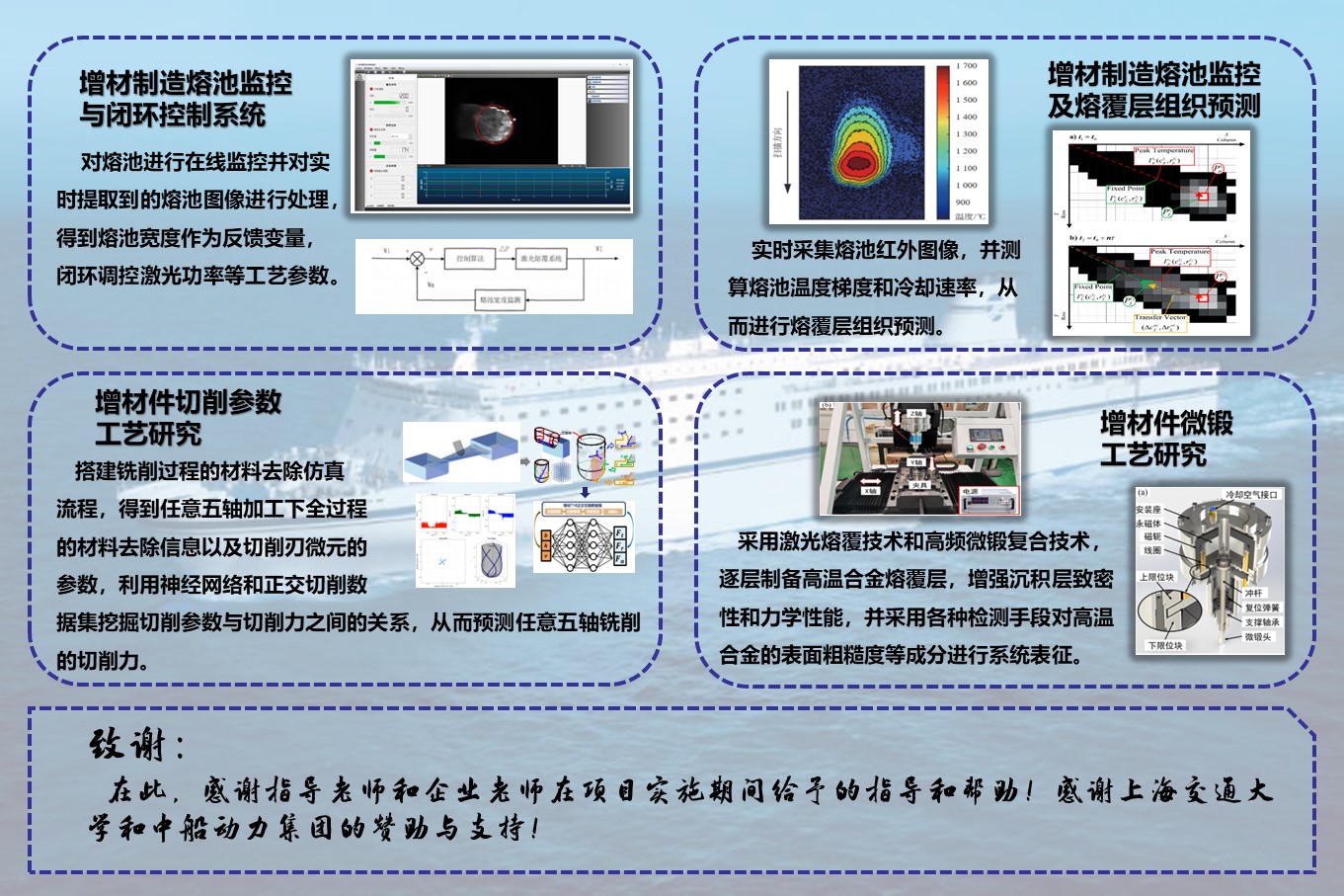 揭示增材高温合金的材料去除和加工表面创成机理,获得增材高温合金的最优切削参数组合,形成实验报告一份;获得高致密性、高强韧性的增材高温合金,形成工艺报告一份;以激光功率为调控对象,熔池像素面积作为反馈变量,建立激光熔覆工艺闭环控制系统采用PID控制算法,实时、自适应地调整激光功率,实现激光熔覆工艺参数自适应成形加工;针对激光熔覆增材制造过程,开展熔池监测以及熔覆层组织预测,形成增材制造过程中组织结构预测方法。