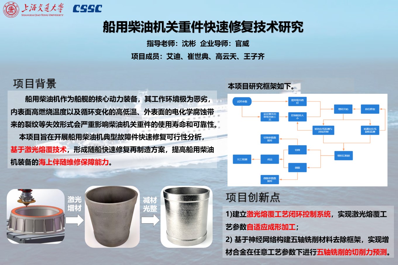船用柴油机作为船舰的核心动力装备,其工作环境极为恶劣,内表面高燃烧温度以及循环变化的高低温、外表面的电化学腐蚀带来的腐蚀、裂纹等失效形式会严重影响柴油机关重件的使用寿命和可靠性。本项目将基于激光熔覆技术,实现增材过程熔池监控的闭环控制,并以增材试样为研究对象,开展原位减材加工工艺试验,阐述增材高温合金的材料去除和加工表面创成机理,以探究增材后样件的最优减材工艺参数最终实现船用柴油机关重件的复用,提高船用柴油机使用效率。