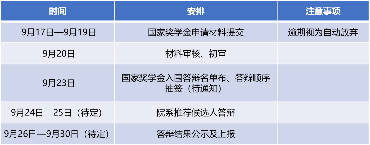注:2019年毕业(以正式答辩时间为依据)的研究生不再具备申请研究生国家奖学金资格。对于2017级硕博连读生,如转硕或未按期转博,则不能参评国家奖学金。对于其他校、院专项奖学金,可按照各奖学金具体要求参评。