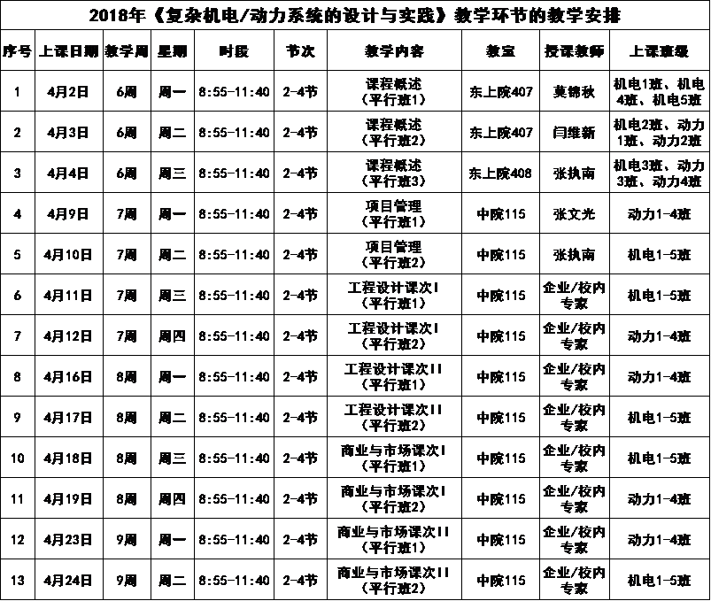 2018年《复杂机电/动力系统的设计与实践》课程开课通知