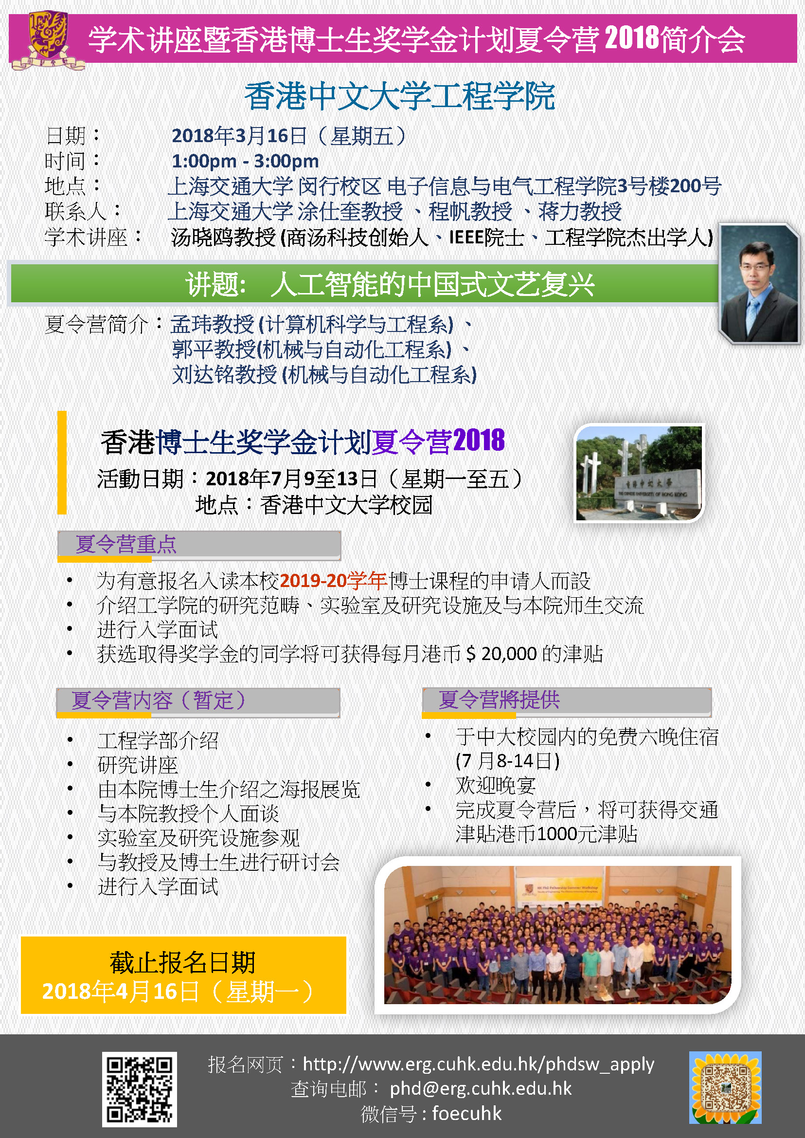 学术讲座暨香港博士生奖学金计划夏令营2018简介会