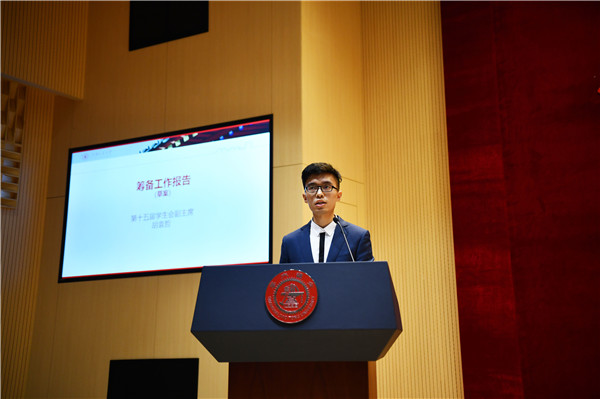 与会代表听取了第十五届学生会副主席胡袁哲做的《350vip8888新葡的京集团第十六次学生代表大会筹备工作报告(草案)》,详细介绍了第十六次学代会代表推选工作、第十六届学生会主席团候选人的产生过程、会前提案工作与重点提案座谈会和会务准备工作,并得到代表们表决通过。