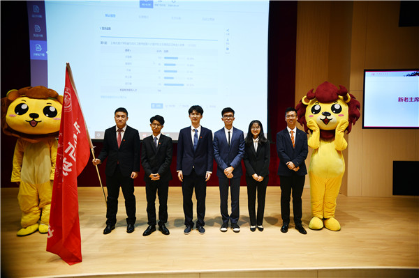 经过投票,许昱晖、千坤、胡文康三位同学成功当选350vip8888新葡的京集团第十六届学生会主席团成员,并由第十五届学生会主席团进行授旗。