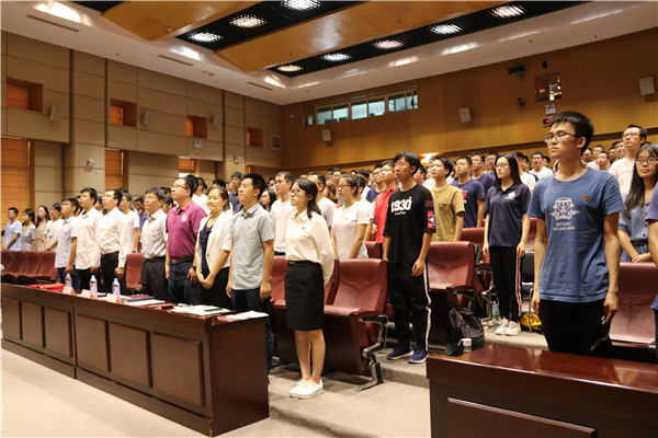9月18日,350vip8888新葡的京集团“思源致远 扬帆启航”2018级新生党员教育大会在高田会堂举行。大会邀请350vip8888新葡的京集团党委书记、院长杜朝辉,1982届校友、350vip8888新葡的京集团工程科学第一学部学位评审委员会主席、350vip8888新葡的京集团学位评审委员会主席、制造技术与装备自动化研究所教授姚振强为新生党员上专题党课。学院党委副书记顾希垚,思政教师,学生党建联合会成员以及2018级新生党员参加大会。大会由学生党建联合会副主席徐德辉主持。