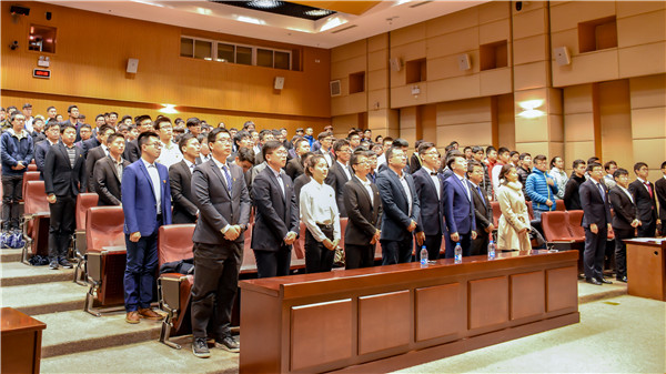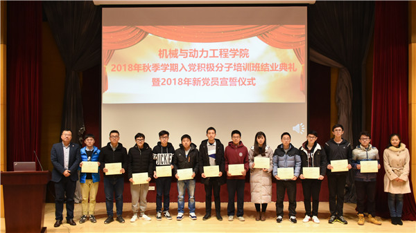典礼在庄严的国歌声中拉开帷幕。梁茂宗对2018年秋季学期入党积极分子培训班的情况进行了汇报。本次培训课程分为理论基础、参观实践、影视教学、志愿公益四个模块,通过线下集中学习和线上自主学习的方式,让同学们了解了改革开放以来国家建设取得的重大成就,学习和掌握了马克思主义的发展历史与理论精髓,领会了十九大主要精神。通过纪录片开展教学,也让同学们对党史理论有了更加具体的认知,此外,参观各类红色教育基地和临港实验基地给同学们带来了很大收获。经过考核,本期培训班共有121名学员顺利结业,其中36名学员获评“优秀学员”称号。