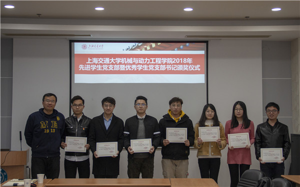 会议表彰了在2018年工作扎实、成绩显著的学生党支部,经前期答辩评审,9个学生党支部获评学院2018年先进学生党支部,9位学生党支部书记获评学院2018年优秀学生党支部书记荣誉称号。顾希垚为获奖支部和支部书记颁发证书。