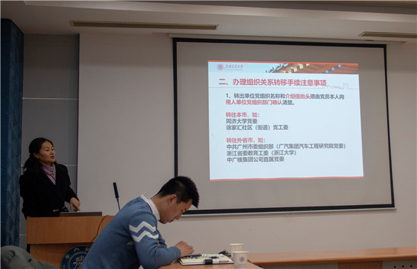 陶晓红简要介绍了新学期学生党建工作要点,针对学生党员发展、预备党员转正、毕业生党员组织关系转接、毕业生党员远航教育等工作进行了详细说明,要求各支部扎实做好党建基础工作,认真开展组织生活和主题党日活动,推动“两学一做”学习教育常态化制度化,实现学生党建“严格、规范、质量、实效”的工作目标。