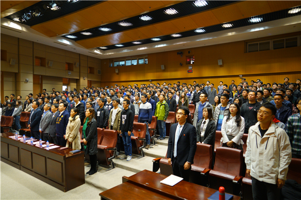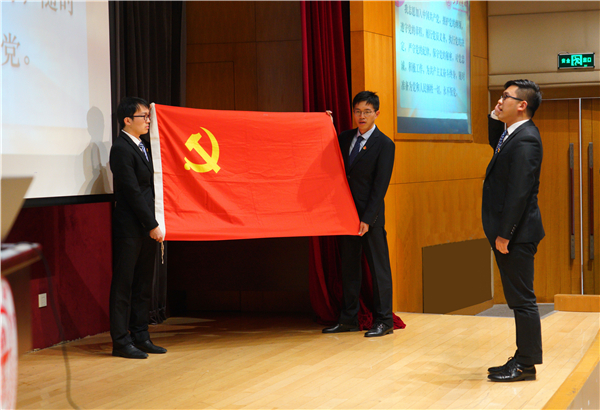 毕业生党员代表陈龙带领全体毕业生党员,在鲜红的党旗前,庄严肃立,高举右拳,重温入党誓词。大会在雄壮的国际歌声中落下帷幕。