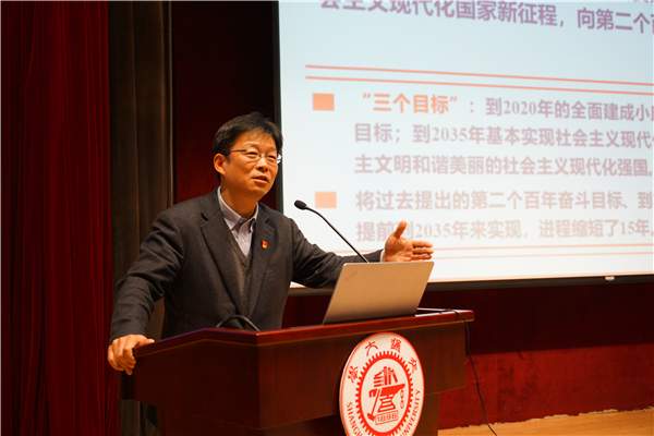 杜朝辉以“不忘初心,坚定信念,努力奋斗”为主题,为毕业生上了一堂生动的党课。他首先解读中国共产党人的初心和使命,谈到新时代新的奋斗目标,即在本世纪中叶建成富强民主文明和谐美丽的社会主义现代化强国,在座的同学们是这一伟大事业的亲历者和见证者。杜朝辉为大家解读党章中关于党员义务的规定,要求党员同学做到“四讲四有”和“四个合格”。他以一代伟人马克思的生平故事激励党员同学树立高远志向,不忘初心,立志为世界和人类的梦想奋斗;他讲述人民科学家钱学森学长一生中最激动的两件事,一是《工程控制论》获得恩师的高度肯定,二是1959年被接纳为中国共产党党员时,更是激动得夜不能寐。他还列举了百岁教授、上海交大原校长范绪箕以及林忠钦校长等杰出党员的奋斗历程以及他们为国家科技进步所做出的贡献。他强调,交大正是因为有了像他们一样的一大批无私奉献的优秀党员才有了今天的荣誉。他对毕业生党员同学提出三点希望:树立崇高的理想和志向,胸怀祖国,放眼世界;脚踏实地,认真学好本领;牢记党员责任和使命,时刻起模范带头作用。他勉励毕业生党员同学不断努力,以聪明才智和勤奋努力为中国科学技术发展做出自己的贡献,为国家实现“两个一百年”伟大梦想而奋斗。