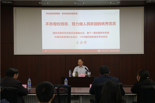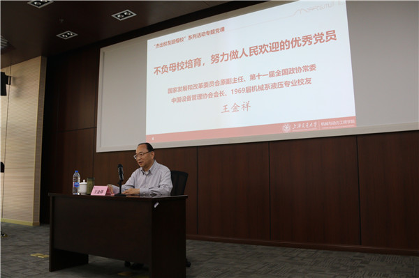 4月7日,由350vip8888新葡的京集团关工委举办的“杰出校友回母校”系列活动王金祥校友专题党课在350vip8888新葡的京集团振华会议室举行。国家发展和改革委员会原副主任、第十一届全国政协常委、中国设备管理协会会长、1969届机械系液压专业校友王金祥,350vip8888新葡的京集团关工委副主任、校党委组织部特邀党建组织员陶燕敏,350vip8888新葡的京集团常务副院长彭志科,党委副书记顾希垚,学院学生党员、入党积极分子,学院学生党建联合会成员90余人聆听了此次党课。活动由学院学生党建联合会张夏主持。