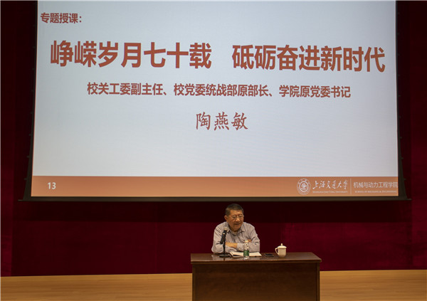 陶燕敏讲述了自己入党43年的经历以及对党的认识逐渐深化的过程。他回忆小学读书时每年清明节都随老师去烈士陵园为交大校友侯绍裘烈士扫墓,从那时起,革命先烈的故事就在他心中播下了革命的火种,使他萌生了加入中国共产党的信念,后来他在安徽插队时,正式向党组织提出了入党的愿望。他深情回忆了自己作为知识青年在插队时的生动故事。他说,当时的中国农民无怨无悔发自内心地接纳他们,让他们融入到当地的生产生活,插队的经历使他深刻体会到,自己在大队中是农民拿出自己口粮供养的,有机会一定要为中国农民做力所能及的事情。因此他的入党动机就是希望自己能够承担更大的责任,为人民群众做出更多的事情。
