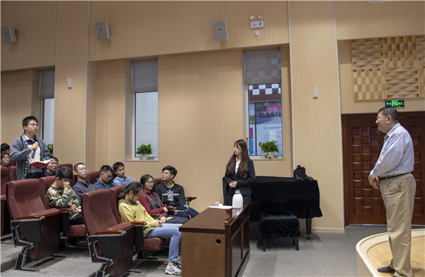 陶燕敏以“峥嵘岁月七十载,砥砺奋进新时代”为主题,围绕“初心”、“理想和信念”,与入党积极分子同学分享自己的人生经历与感悟。
