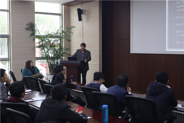 随后,Dr. Ryan Thorpe也就英文学术写作了报告。她强调了在英文写作中校正的重要性并给出了校正的方法,建议大家完成英文初稿后要仔细地校对以发现其中的问题,最后给同学们推荐了有用的网站资源和实用的Apps。