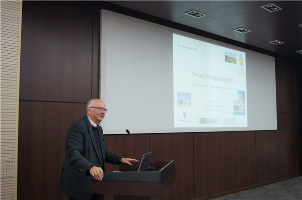 报告环节邀请到来自丹麦奥尔堡大学的Dr. Henrik Lund和来自塞浦路斯大学的Dr. Soteris Kalogirou两位嘉宾。制冷所王如竹教授致欢迎辞,隆重介绍了两位主讲嘉宾以及他们在能源领域做出的贡献,并对到场的老师、同学们表示感谢。