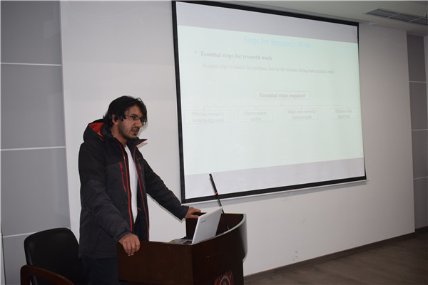 第三位主讲人Mahbubur首先指出了出国深造的重要性,并从语言、经费、毕业年限、生活状况等方面对选择中国还是其它国家进行了比较。最后,他具体分享了如何选择留学国家、申请留学的步骤和一些小技巧。