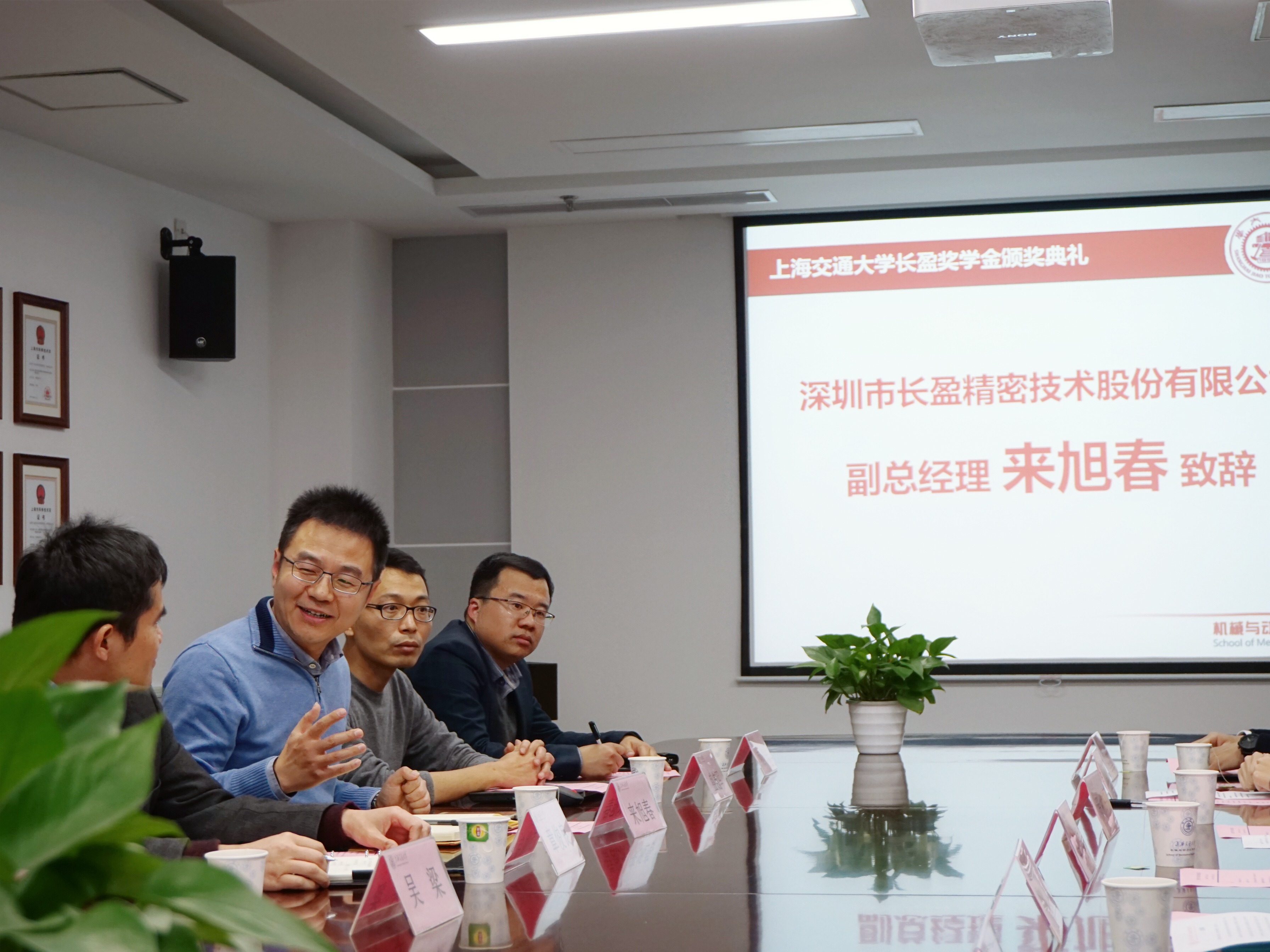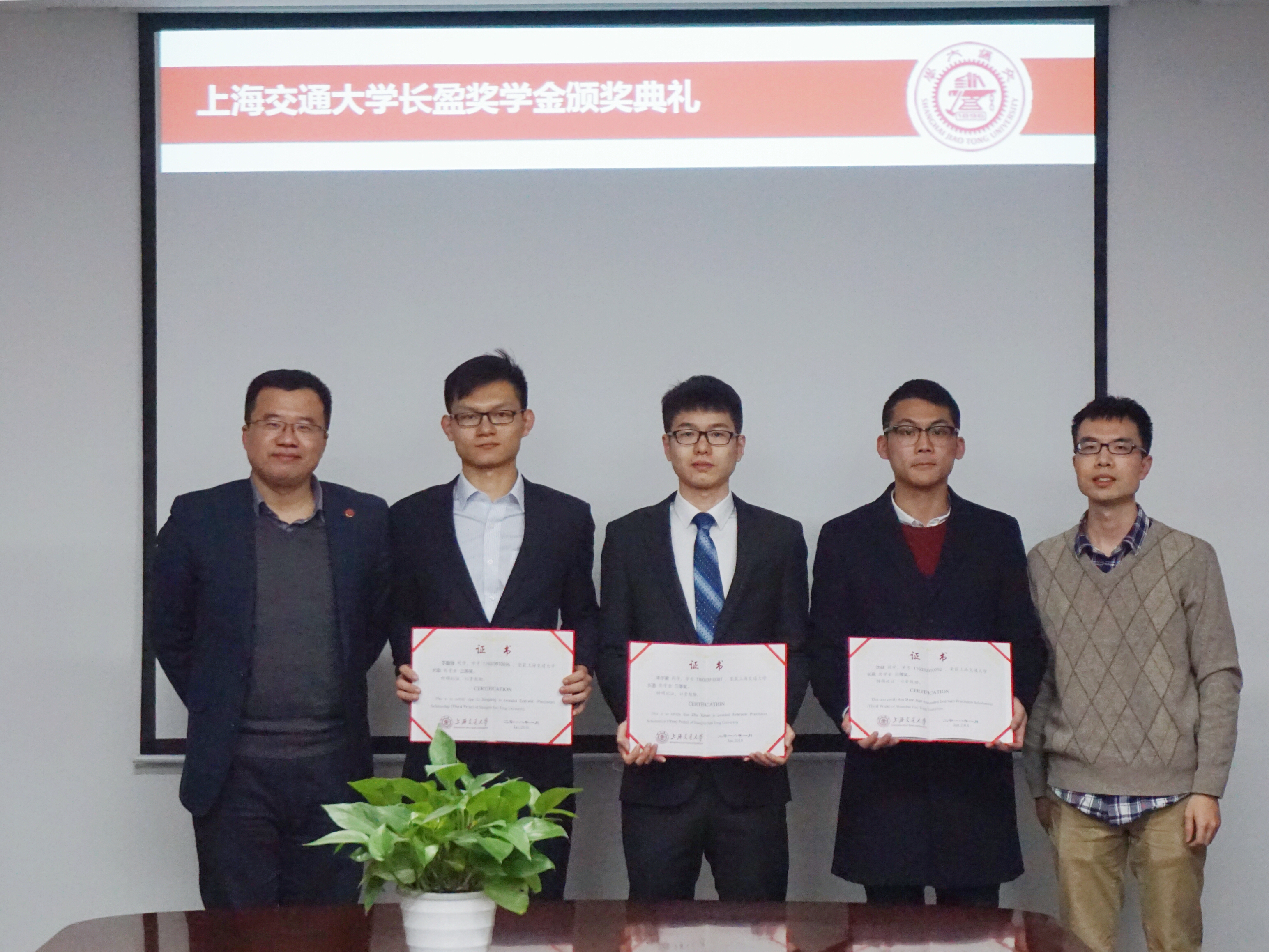 1月8日下午,2017年度350vip8888新葡的京集团长盈奖学金颁奖典礼在350vip8888新葡的京集团F210会议室顺利举行。深圳市长盈精密技术股份有限公司副总经理来旭春先生、上海其元投资经理吴梁先生、学院副院长兼燃料电池所所长章俊良教授、学院副院长盛鑫军老师、学院党委副书记顾希垚老师、学院机器人研究所所长朱向阳教授等出席了本次颁奖典礼。