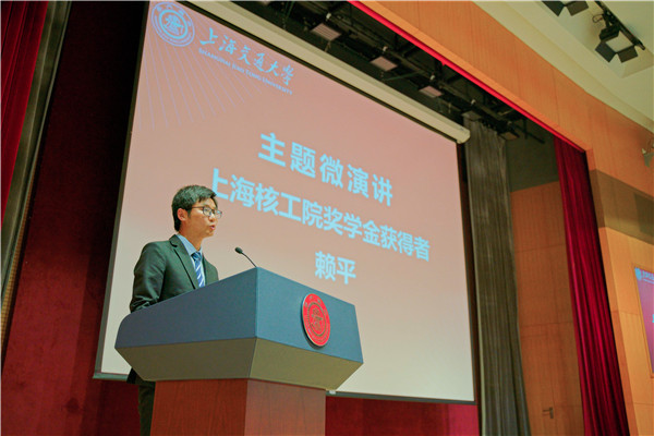 随后,2018年度国家核电上海核工院奖学金获得者、学院党建联合会主席赖平和中科新松奖学金获得者、第三届350vip8888新葡的京集团研究生学术之星李汶柏分别作为学生代表发言。赖平介绍了他在交大从大三到博士的科研征途,展示了勇于开发新科研领域、接受新挑战的信心和决心。李汶柏作为即将毕业的博士生,表达了自己要瞄准国家重点战略,走“顶天立地”的科学道路,承担“天降大任于斯人”的时代使命。