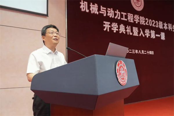 林立涛介绍了学院的历史沿革、杰出校友事迹等,表达了对新生们的殷切期盼,提出了“脚踏实地,努力奋斗”“志存高远,勇担使命”两点要求,并表示学院永远是每一位学生坚强的后盾,祝愿大家学有所成、逐梦成真。