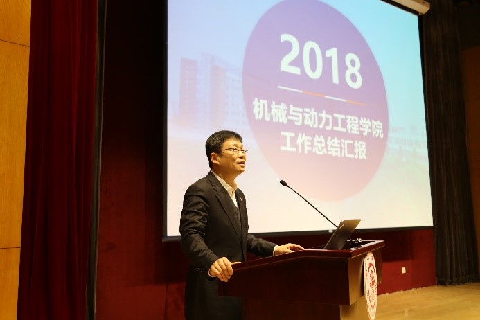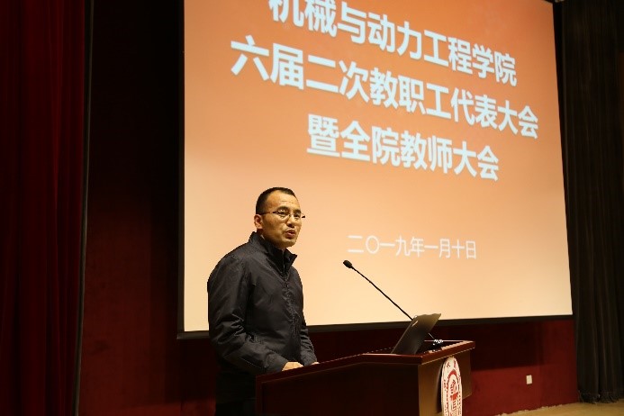 党委书记兼院长杜朝辉作学院领导班子和个人年度工作报告,从班子建设、党风廉政、主要工作和成效、不足及努力方向四个方面总结了学院年度工作。他指出,2018年学院稳步推进各项重点工作,亮点突出,成效显著。他报告了学院在党的建设、学科发展、科学研究、人才培养、师资队伍、实验室建设、产学研基地等方面取得的成绩,感谢全体教师为学院和学科发展所做的努力,并提出新一年的主要工作:落实教书育人、立德树人根本任务,强化价值引领,提高人才培养质量;树立危机意识,在科学研究上寻求更多突破;积极适应科技和经济发展,拓展学科方向,培育新的学科增长点;增强安全防范意识,加大安全培训力度,提升实验室管理水平;加强支撑队伍建设,提高管理服务能力。